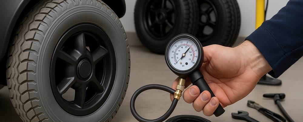 Lekke banden vormen een veelgehoord issue. Een scherpe steen of spijker leidt al snel tot een langzaam leeglopende band. Zodra het profiel versleten raakt of droogtescheurtjes ontstaan, is vervanging noodzakelijk. Daarnaast is bandenspanning cruciaal. Te zachte banden zorgen voor extra slijtage en een hoger energieverbruik. Richt u daarom op een waarde tussen 2,0 en 3,5 bar. Check dit minimaal eens per maand. Dit vermindert de kans op een defecte scootmobiel en verlengt de levensduur van uw banden en wielen.